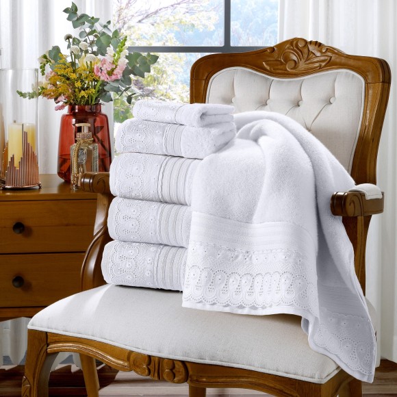 1 Toalha Rosto com Renda Egípico Cristal